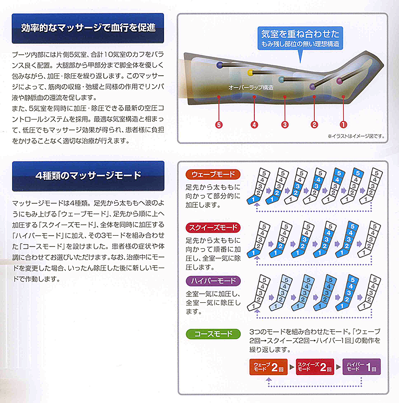 そしてからだ全体の血行を活発にします。ラクシアは空気圧により静脈を圧縮。歩行運動に代わって血液の循環を促進します。
